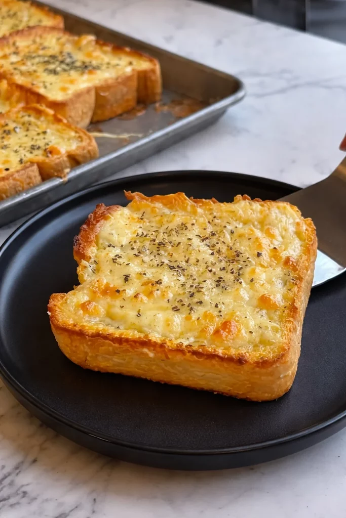 Der Käse-Knoblauch-Toast schmeckt besonders gut zu einer warmen Suppe, einem frischen Salat oder einfach pur als schneller Snack. Wer es noch würziger mag, kann zusätzlich etwas Chili oder italienische Kräuter darüberstreuen.