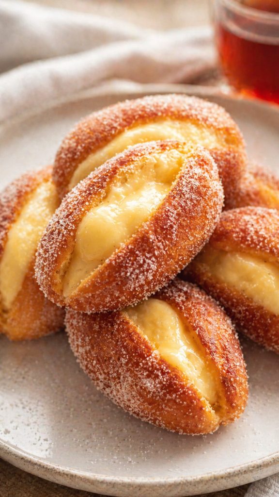 Außen knusprig, innen cremig und mit einem feinen Vanillearoma – diese Pepitos erinnern an klassische Nachmittags-Snacks. Perfekt, um ohne großen Aufwand zu beeindrucken: weiche Brötchen, gefüllt mit hausgemachter Vanillecreme, leicht in aromatisierter Milch getränkt, in Ei gewendet und goldbraun ausgebacken. In wenigen Schritten erhältst du eine unwiderstehliche Leckerei – warm oder bei Zimmertemperatur ein Genuss, ideal zum Teilen mit der Familie oder für Treffen.