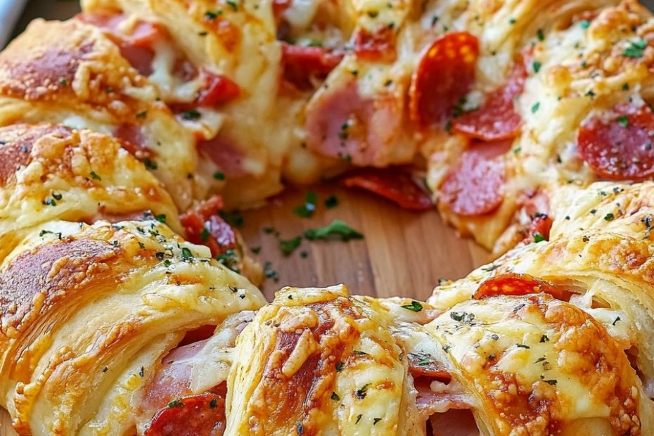 Schinken-Peperoni-Ring aus Croissant-Teig