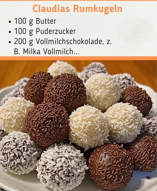 Zutaten: 100 g Butter 100 g Puderzucker 200 g Vollmilchschokolade, z. B. Milka Vollmilch 100 g Schokolade, z. B. Milka zartherb Rum Geschmack Vollmilchschokostreusel *************** Zubereitung:… Read More »Claudias Rumkugeln