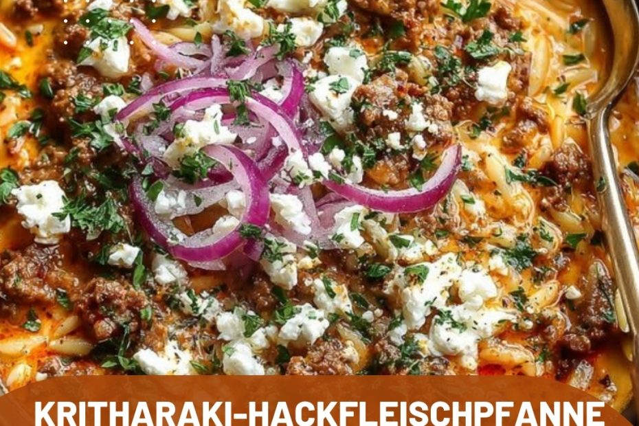 Zutaten1 Zwiebel2 Knoblauchzehen20 g Öl (zum Beispiel Olivenöl)500 g Rinderhackfleisch300 g Kritharaki750 ml Gemüsebrühe200 g FetaSalz und Pfeffer nach GeschmackFrische Kräuter (zum Beispiel Petersilie) zum… Read More »Kritharaki-Hackfleischpfanne mit Feta