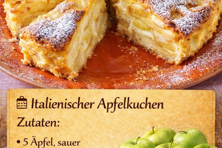 Zutaten 5 Apfel sauer 100 g Butter flüssig 2 Eier mittelgroß 250 g Zucker 1 Pck. Vanille-Zucker 100 g Weizenmehl Zitronensaft 0,5 Pck. Backpulver100 ml… Read More »Italienischer Apfelkuchen
