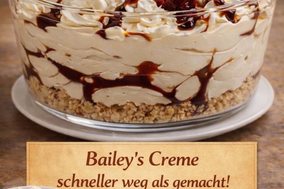 1 kg Mascarpone 4 Becher Schmand 2 Gläser Sauerkirschen (abgetropft) 150–200 ml Bailey’s (nach Geschmack) 100 g Zartbitterschokolade (geraspelt oder gehackt) optional: Schokosauce oder Kakaopulver… Read More » Bailey’s Creme – schneller weg als gemacht!