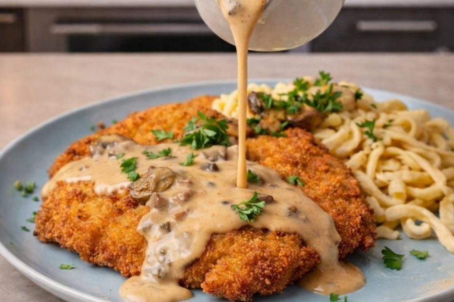 Zubereitungszeit ca. 30 Minuten Portionen 2–3 Portionen ZutatenFür die Schnitzel 2 Putenschnitzel oder Kalb Salz & Pfeffer 2 EL Mehl 1 Ei Semmelbrösel Öl oder… Read More » Jägerschnitzel mit Pilzrahmsoße