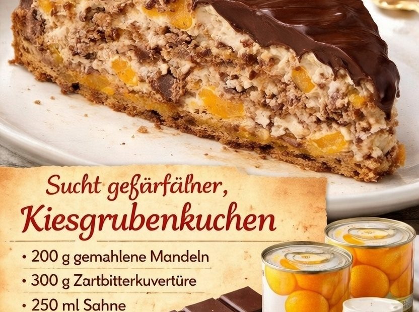 Die Zutaten 5 Eier 200 g Zucker 200 g gemahlene Mandeln 30 g Mehl 1 TL Backpulver 300 g Zartbitterkuvertüre 250 ml Sahne 20 g… Read More »Kiesgrubenkuchen mit Mandarinen
